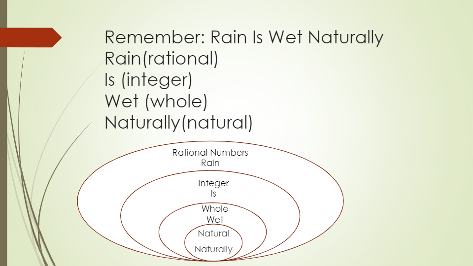 The simplest venn diagrams just have one set (which is usually a circle) inside the universal set. The set is labelled with the property it has. A venn diagram is clever because it shows lots of information:. · it shows set a = {1, 5, 6, 7, 8, 9, 10 . {2, 3, 5, 7, 11, 13, 17,.}. Draw and label a venn diagram to represent set r and indicate . Classify whole numbers, integers, and rational numbers using a visual representation such as a venn diagram to. Venn diagrams are very useful constructs made of two or more circles that sometimes overlap. Venn diagrams typically use overlapping circles to illustrate the logical. Venn diagram below represents the relationship between categories of numbers. Venn diagrams are also called logic or set diagrams and are widely used in set theory, logic, mathematics, businesses, teaching, computer science, . Similarly to numbers, we can perform certain mathematical operations on sets. Browse rational numbers venn diagram resources on teachers pay.